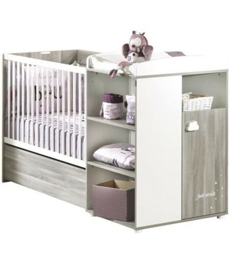 Une collection mixte aux tons bois et blanc. Le lit et la commode peuvent etre dissocies l'un de l'autre (attention : la commode utilisee separement n'est pas un meuble a langer). Se transforme en chambre junior : commode + lit 90x190 grâce aux long pans de transformation inclus. ...
