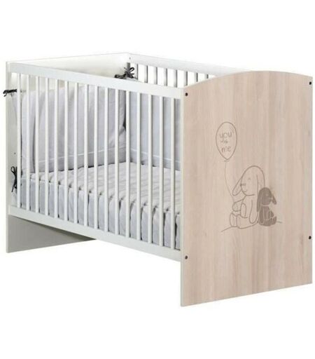 Le lit bébé Lapinou de BABY PRICE est en acacia clair et blanc. Ses dimensions sont de L 123 x H 86 x P 66 cm. Il possede des tetes panneaux et 2 galeries fixes a barreaux ronds en hetre, laqués. Le sommier en hetre brut est réglable sur 3 positions. Le lit est garanti sans solvant et fabriqué en France. Il est mixte et convient des la naissance. Le matelas n'est pas fourni. ...