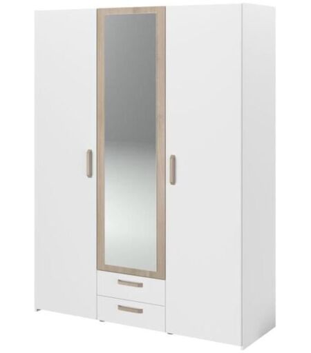 Parisot Armoire dream 3 portes - Panneau de particules - Miroir - Décor blanc - L150 x H200 x P52 cm
