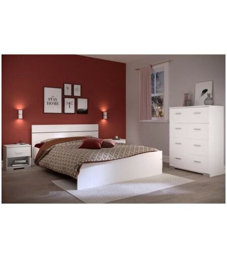 Parisot Chambre complete boston : Lit adulte 140x190 + Commode + 2 Chevets - Décor blanc - Fabriqué en France