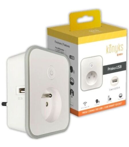 La prise Konyks Priska USB est une prise connectée Wi-Fi et Bluetooth de 16A, équipée de 2 prises USB-A et d'un compteur de consommation intégré. Idéale pour contrôler vos appareils a distance, elle est compatible avec Google Home et Alexa, et permet de suivre votre consommation d'énergie. ...
