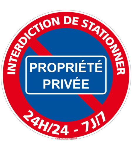 SIGNALETIQUE.BIZ FRANCE Panneau Interdiction de Stationner, Panneau de Signalisation Taille Standard 250 mm. Interdiction de stationner propriété privée 24h/24 .