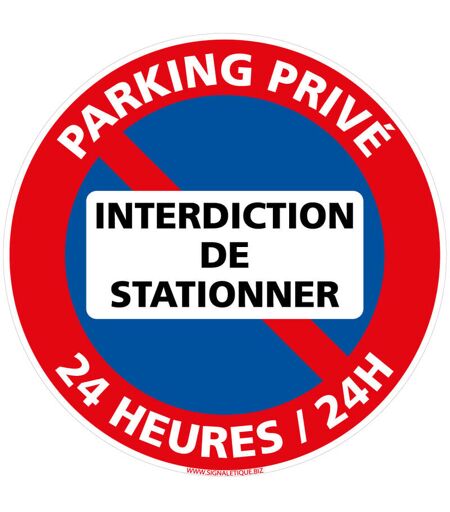 SIGNALETIQUE.BIZ FRANCE Panneau Interdiction de Stationner, Panneau de Signalisation Taille Standard 250 mm. Parking privé Interdiction de stationner 24h/24 . - Parking