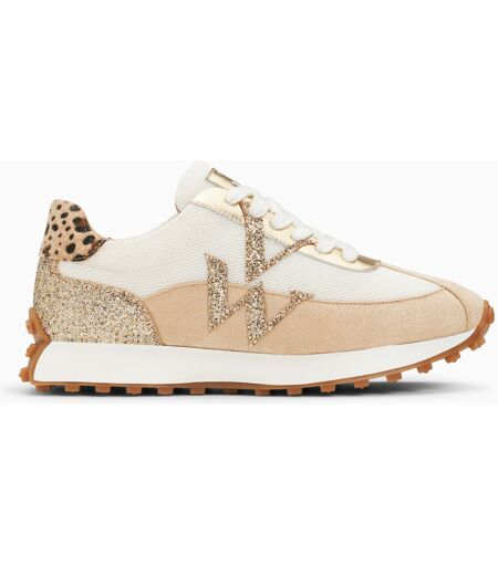 3Suisses : - Baskets en mesh ivoire- Monogramme et contrefort en similicuir or pailleté- Garants en similicuir or texturé- Empiècements en suédine beige- Patch arrière beige effet poulain à imprimé léopard- Fermeture à lacets blancs- Bout rond- Semelle peinte en blanc à petits crampons camelHauteur du talon : 4,5 cmHauteur de la plateforme : 2 cmHauteur de la tige : 6 cm Ce modèle taille normalement, prenez votre pointure habituelle. Pour les demi-pointures, préférez la taille du dessus. Marque: Vanessa Wu Genre: Femme ...