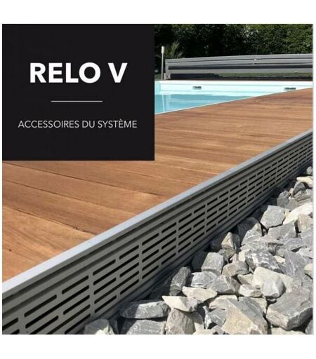 Grille de ventilation REVOL V en Aluminium argentée, anodisée Dimensions : 1 200 x 150 x 20 mm + rail alu de fixation dimensions : 1 880 x 18 x 17 mm Le profilé de ventilation RELO V complète parfaitement toutes les terrasses en bois ou composite. Grâce à sa largeur de 150 mm, il permet une ventilation optimale de la structure porteuse et des lames de terrasse. Cela réduit considérablement l’encrassement dû aux projections d’eau sur les objets environnements comme les façades de maison, les portes, les portes coulissantes, etc. Le profilé de ventilation en aluminium à surface anodisée s’intègre parfaitement dans toutes les terrasses et forme une transition harmonieuse avec les objets adjacents. Sa longueur de 1 200 mm, optimisée d’un point de vue logistique, et le profilé de support adapté de 1 880 mm de long permettent un montage progressif, aisé et rapide. En cas de besoin, le démontage peut également être réalisé en toute simplicité. 80% des soucis sur une terrasse viennent d’un ...