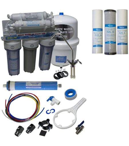 Viva - Osmoseur domestique 6 étapes de filtration RO6 75GPD + Jeu de cartouches (3 pièces)