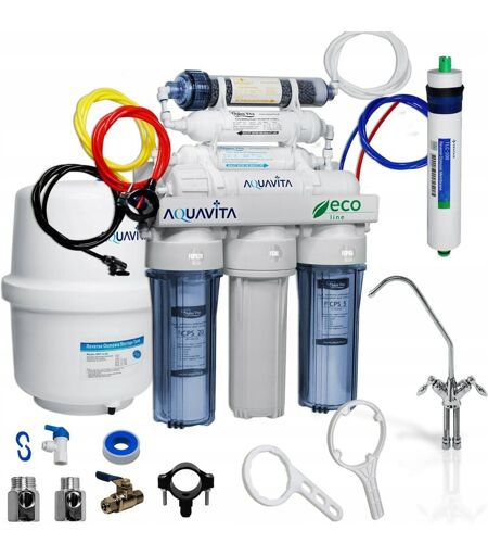 RO7 AQUA VITA MINÉRALE REDOX C'est un appareil osmotique complet qui vous permet d'obtenir de l'eau exempte d'impuretés telles que : produits chimiques toxiques et cancérigènes, métaux lourds, bactéries et virus. La perfection du système réside dans l'utilisation de la technologie de traitement de l'eau en 7 étapes , la possibilité de sa déminéralisation et l'utilisation de la cartouche ionisante RO AV-REDOX-L double bec moderne permettant une alimentation séparée de l'eau propre après osmose et de l'eau pure minéralisée les filtres ont un certificat PZH L'eau circulant dans ce système est soumise à 7 étapes de filtration 1. FCPS20 - Cartouche de mousse mécanique en tissu non tissé en polypropylène élimine les impuretés mécaniques plus importantes non dissoutes dans l'eau, telles que la rouille, les suspensions, le sable, le limon, etc. jusqu'à 20 microns. 6 mois. 2. FCBL10 - Les cartouches de charbon bloc améliorent le goût et l'odeur de l'eau, éliminent les impuretés mécaniques ...