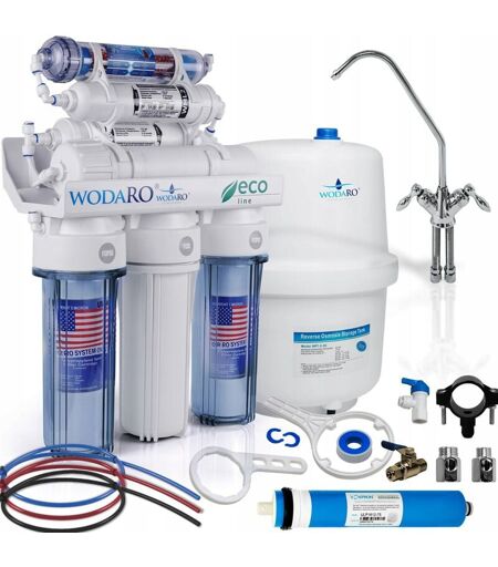 FILTRE À EAU RO7 EAU RO ECO AVEC IONISEUR C'est un appareil osmotique complet qui vous permet d'obtenir de l'eau exempte d'impuretés telles que : produits chimiques toxiques et cancérigènes, métaux lourds, bactéries et virus. La perfection du système réside dans l'utilisation de la technologie de traitement de l'eau en 7 étapes , la possibilité de sa dominalisation et l'utilisation d'une cartouche d'ionisation de l'eau. Les filtres ont un certificat PZH valide L'eau circulant dans ce système est soumise à 7 étapes de filtration 1. WPM-5 - La cartouche de mousse mécanique en tissu non tissé en polypropylène élimine les impuretés mécaniques plus importantes non dissoutes dans l'eau, telles que la rouille, les suspensions, le sable, le limon, etc. jusqu'à une taille de 5 microns. 2. WWB10 - Les cartouches de charbon bloc améliorent le goût et l'odeur de l'eau, éliminent les impuretés mécaniques supérieures à 10 microns , éliminent le chlore et ses dérivés toxiques, éliminent le plomb et ...