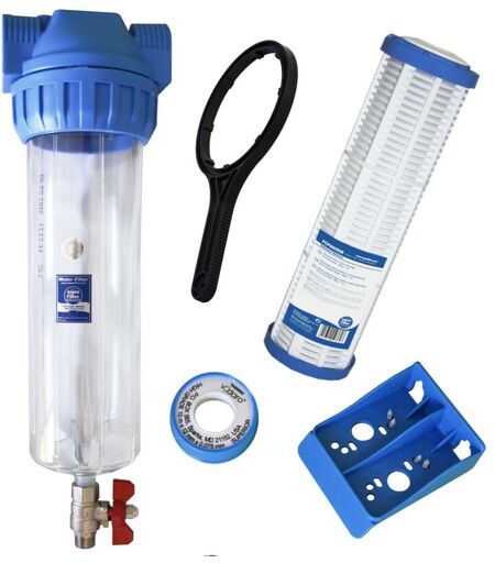 PRÉFILTRE DOMESTIQUE Capacité: 2 litres Code du produit : FHPR12-3V_R Modèle : FHPR12-3V_R SAMOCZYSZCZĄCY L'ensemble inclut : - Boîtier de filtre FHPR12-3V - Cartouche réutilisable FCPNN50M - Plaque de montage pour visser le filtre au mur - Vis qui fixent le filtre à la plaque - Clé pour dévisser le carter - Vanne de vidange - Bande d'étanchéité Grâce à la construction à trois éléments de l'Aquafilter FHPR12-3V, le boîtier est idéal pour une installation dans des endroits où la hauteur totale nécessaire au fonctionnement du filtre compte - cela est dû au fait que pour dévisser le couvercle du filtre, il n'est pas dévissé de la tête, comme cela se produit dans les boîtiers de filtre typiques, et seul l'écrou est dévissé. Le filtre est conçu pour l'eau froide et la pression jusqu'à 6 bars. Le boîtier du filtre de haute qualité a des filetages en laiton de 1/2" de diamètre Se compose de trois éléments: - Tête de filtre, vissée sur le tuyau d'eau froide - Couvercle de filtre dans lequel ...