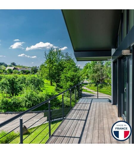 PRAGUE 5 lisses, c’est l’alliance parfaite entre design épuré et robustesse. Sa structure en aluminium rond résiste aux intempéries tout en restant élégante sur balcon ou terrasse. Livré en kit complet, il permet une installation simple et rapide. Profitez d’une solution robuste et élégante pour valoriser votre espace. Pour des dimensions sur-mesure rendez-vous sur le site : www.balustrone.fr (rubrique ''Formulaire de devis") Les balustrades à lisses ne sont pas normés NF et de ce fait il est déconseillé de poser ce produit à une hauteur supérieur à 1m en partant du sol. Optez pour un garde-corps semi-vitré ou vitré pour répondre aux normes de sécurité NF. Contenu de votre colis : - X1 main courante Ø50 mm en aluminium (selon coloris et longueur) - X2/3/4 montants Ø40 mm en aluminium renforcé (selon la longueur) - X5 lisses de Ø16 mm en aluminium (selon la longueur) - Accessoires (platine de fixation sol OU applique OU goujon d'ancrage avec cache finition, profil de finition, bouchon) ...
