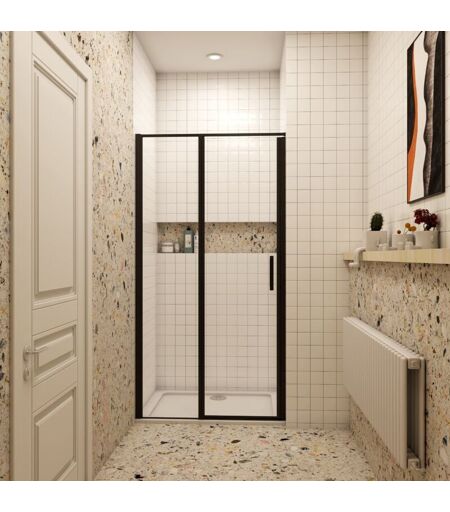 AICA SANITAIRE Porte de douche pivotante 90x185cm profilé en alu noir