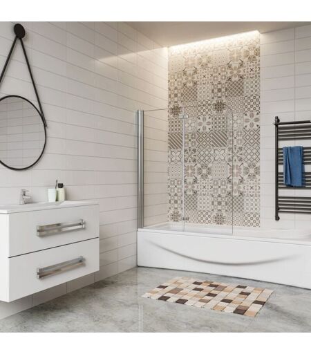 AICA SANITAIRE Pare-baignoire 100x140cm pivotant et pliant, écran de douche à 2 volets paroi de baignoire en verre securit clair et anticalcaire