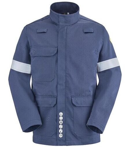 Veste avec fermeture à glissière sous patte maintenue par pressions cachées. Poche poitrine et poches basses sous rabat fermées par pressions cachées. Passants porte-dosimètre. Bas de manches réglables par pression cachée. Bandes de 50mm rétro-réfléchissantes80% Coton 19% Polyester 1% Fibre Antistatique -320 g/m². ...