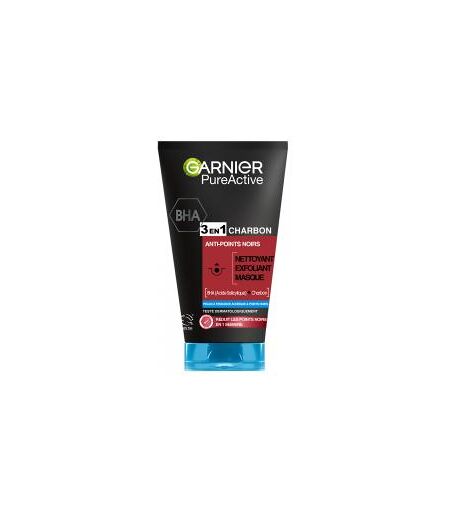 Garnier PureActive Nettoyant et Masque Anti-Points Noirs 3en1 au Charbon 150 ml - Tube 150 ml