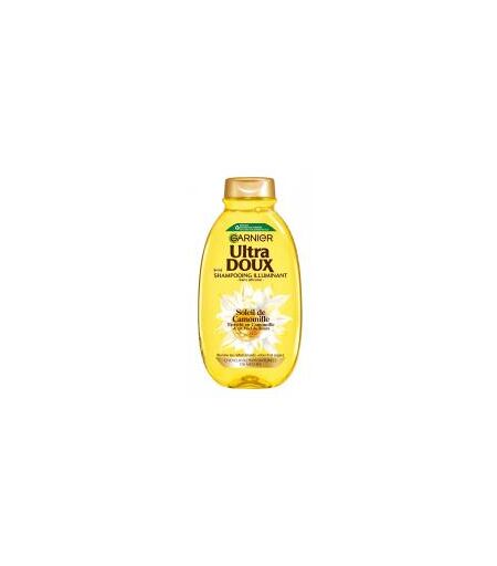 Garnier Ultra Doux Soleil de Camomille Shampooing Illuminant 400 ml illumine les reflets, adoucit et répare les cheveux blondsce shampoing est une véritable recette de lumière pour les cheveux blonds, qu’ils soient naturels, ...