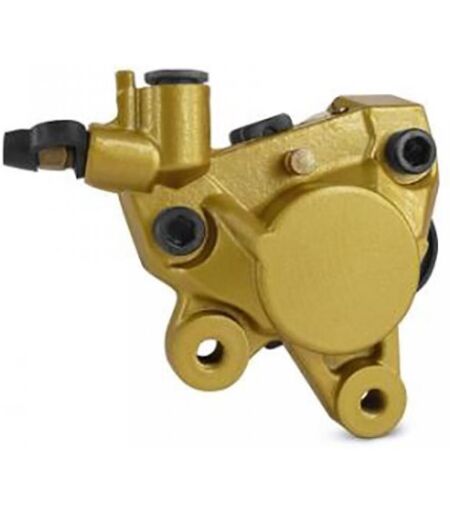 Etrier de frein avant neuf coloris or. L'entre axe des points de fixation de cet étrier est de 43mm. Vendu avec plaquettes de frein, axe et plaquette anti vibration. Livré conforme à la photo. ...