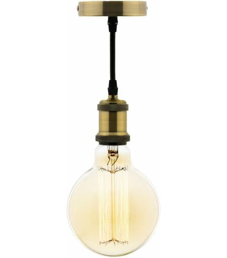 Kit suspension en métal cuivré style vintage avec cordon textile 85cm H03VV-F 2X0,75mm² et ampoule filament carbone Petit globe 25W culot E27 2700k Câble textile 85cm H03VV-F 2X0,75mm² Ampoule filament carbone Petit globe 25W culot E27 2700k ...