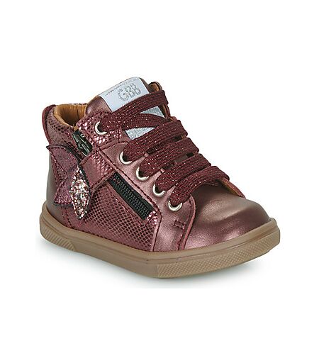 Baskets montantes enfant GBB VALA Bordeaux Disponible en taille fille. 20,21,22,23. li>Construction de la chaussure pensée spécifiquement pour accompagner les premiers pas :li>li>Contrefort asymétrique : empêche le pied de dévier de sa surface d’appui en le maintenant dans l’axe de la marcheli>li>Arrière ergonomique et emboîtant: la chaussure maintient l’arrière du pied pour éviter une déviation qui peut se fixer (à cet âge, le pied est en cartilage souple)li>li>Renfort avant pour protéger les orteils des chocsli>li>Renfort en mousse à l'arrière pour protéger les molletsli>li>Semelle antidérapanteli>li>Système de serrage par laçage permettant au talon de rester en place, et donc d'éviter la crispation des orteils.li>li>Patte velcro pour éviter que la fermeture ne descendeli>br >li>Produit certifié sans produits nocifs par la charte Innoshoe, comme l'ensemble des chaussures GBB.li>. Enfant > Fille > Chaussures > Baskets. ...