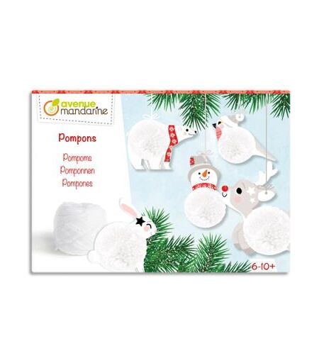 Boîte créative - Avenue Mandarine - Pompons à suspendre - 5 animaux 3D - 2 pelotes de laine - 2 demi-cercles