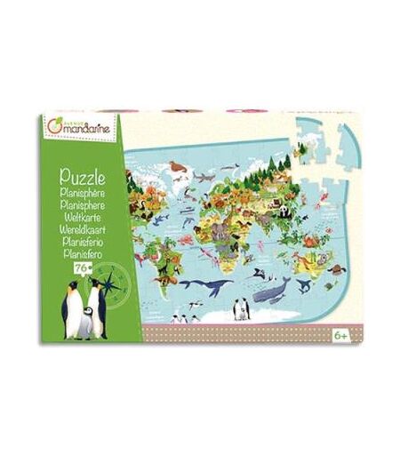 Avenue Mandarine Puzzle 76 pièces - thème Planisfère - à partir de 6 ans