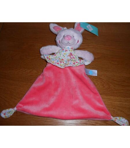 Doudou Lapin Tex Baby Rose Fleurs Grand Lange Vieux Rose Peluche Bébé Naissance