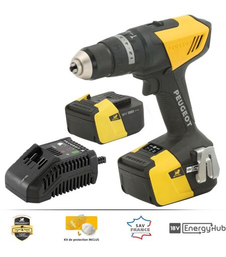 Peugeot Outillage - Perceuse sans fil à percussion 18V - 2x 4 Ah