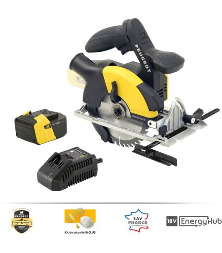 Peugeot Outillage - Scie circulaire 165mm 18V + chargeur + bat 5,0 Ah