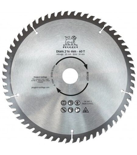 Lame de rechange 60T - Ø216 x 30 mm - pour scie ENERGYSAW-216ASP PEUGEOT
