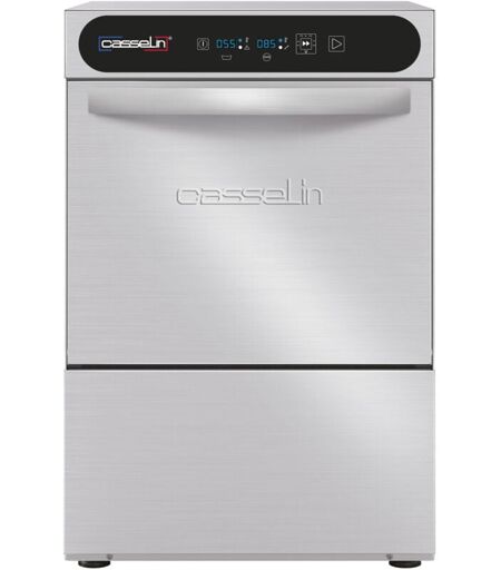 Lave-verres professionnel A350U Conçu avec un châssis et des parois en acier inox AISI 18/10, garantissant une robustesse et une durabilité exceptionnelles, cet appareil est équipé de bras de lavage et de rinçage en acier inox, offrant un nettoyage efficace et hygiénique. La porte à double paroi améliore l'isolation thermique, tandis qu'un contact de sécurité sur la porte assure une utilisation sécurisée. Le lave-verres est conçu pour accueillir des paniers de 350 x 350 mm et est doté d'une résistance de cuve et d'un surchauffeur en Incoly, avec une puissance de 2 600 W pour la cuve et de 2 500 W pour le surchauffeur. Son alimentation électrique est de 230 V à 50 Hz, et il consomme seulement 2 litres d'eau par cycle, tout en ayant une capacité de 13 litres dans la cuve. Les doseurs électriques réglables pour le détergent et le produit de rinçage permettent un ajustement précis des produits de nettoyage pour un résultat optimal. Avec un raccord pour l'eau G3/4M et un écoulement de Ø 25 ...