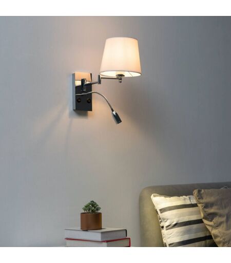 KOSILUM Applique murale liseuse métal chromé et tissu blanc - Aras