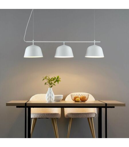 Optez pour le style scandinave avec Olviedo, une suspension triple au design épuré et à la finition blanc mat. Idéale pour éclairer une table à manger, une cuisine ou un îlot central, cette suspension en métal offre une lumière douce et accueillante. Avec sa longueur de plus de 1m20, elle assure un éclairage uniforme sur une grande surface. Complétez-la avec 3 ampoules E27 (non fournies) de type LED blanc chaud pour un rendu lumineux optimal. ...
