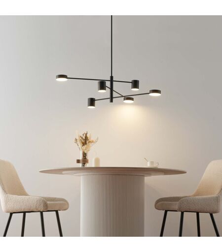 Apportez une touche contemporaine à votre espace avec la suspension Forenza. Dotée de trois barres et de six spots, cette suspension présente une structure entièrement noire mate qui confère à votre pièce une élégance sophistiquée. Les spots sont équipés d'un opercule en PVC blanc pour une diffusion uniforme de la lumière des LED intégrées. Mesurant 104 cm de longueur, ce luminaire est idéal pour éclairer votre cuisine ou votre salle à manger tout en créant une atmosphère accueillante et lumineuse. ...