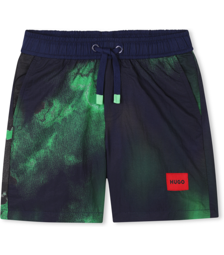 Ce short de bain HUGO promet des baignades entre confort et style. Une étiquette siglée orne le devant d'une jambe. Un élastique associé à un cordon maintient la taille. Un imprimé intégral égaye ce modèle avec poches, confectionné en polyamide déperlant recyclé. Hugo, vert, Outlet, ETE 2025. ...