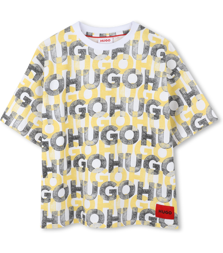 Ce T-shirt HUGO attire par son style indémodable. Un effet hypnotisant découle de l'imprimé intégral multicolore siglé à effet superposé. Une étiquette tissée siglée agrémente ce modèle au col rond en bord-côte. Doté de manches courtes, il est confectionné en coton issu de l'agriculture biologique. Hugo, jaune, Outlet, ETE 2025. ...
