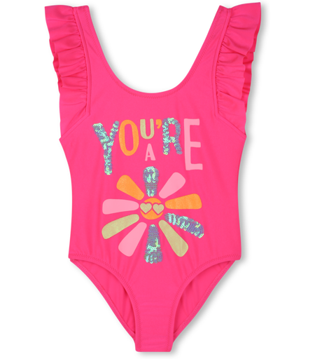 Ce maillot de bain 1 pièce Billieblush permet de profiter des joies de la baignade, à la piscine comme à la plage. Il présente des bretelles volantées et une illustration ornée de sequins sur le devant. Il est vendu avec sa pochette plastique. BILLIEBLUSH, 47A, Outlet, ETE 2025. ...