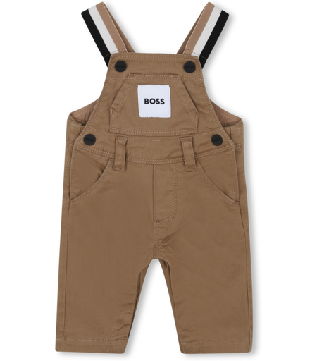Cette salopette BOSS séduit par sa matière à la fois souple et résistante. Elle est dotée de bretelles rayées ajustables à pressions pour s'adapter à la taille de l'enfant. Deux poches latérales et une poche plaquée sur le devant, ornée d'une étiquette siglée, viennent compléter cette pièce à la fois pratique et stylée. BOSS, COOKIE, Salopette, HIVER 2025. ...