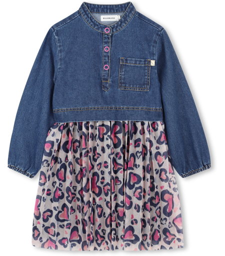 Chic et audacieuse, cette robe bi-matière BILLIEBLUSH est un incontournable pour un look dynamique. Le haut en denim classique rencontre le bas en imprimé léopard, créant un contraste stylé et moderne. La fermeture boutonnée devant complète parfaitement cette pièce originale, parfaite pour un style à la fois tendance et confortable. BILLIEBLUSH, STONE POUSSE, Robes de créateur pour fille, HIVER 2025. ...