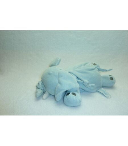 description du doudou : Doudou musical éléphant, 27 cm de longueur environ, bille dans le ventre, matière bruissante dans les oreilles. Doudou super doux. Etat : Bon état général, la musique fonctionne très bien, marques d'usures (machouillage) sur les oreilles, queue et cordon. Produit original. DOUDOU DIFFICILE A TROUVER ...
