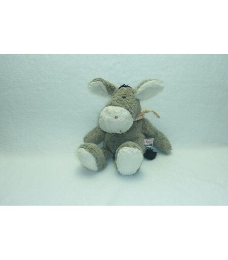 Description du doudou : Doudou peluche âne de 32 cm environ sans compter les oreilles, billes dans le ventre. Coloris : gris, blanc, porte une écharpe à rayures. Doudou super doux. Etat : Comme neuf. Produit original. DOUDOU DIFFICILE A TROUVER ...