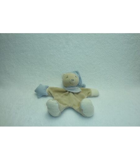 Description du doudou : Doudou plat ours tenant une étoile à grelot. Doudou super doux. Etat : Bon état (légères marques d'usures, étiquette de la marque coupée). Produit original. ...