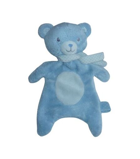 Doudou plat ours 27 cm environ, bleu blanc écharpe blanche motif pois. Etat : Comme neuf ...