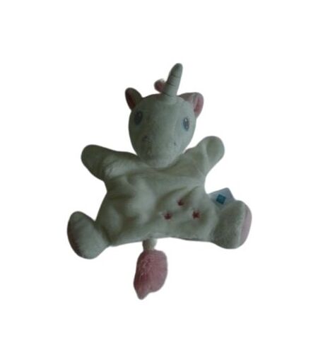 Doudou marionnette licorne 28 cm environ, blanc rose. Etat : Comme neuf ...