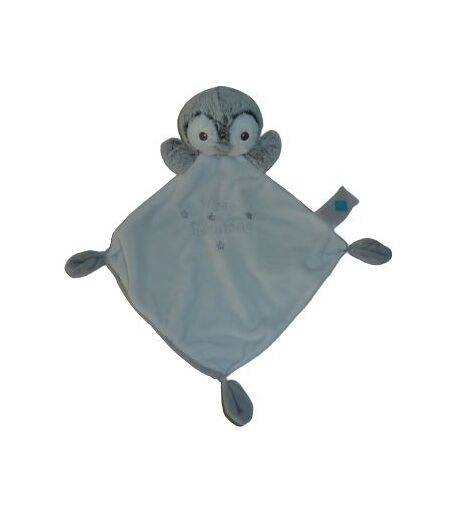 Doudou plat pingouin forme losange 23 cm environ, Mon doudou et étoiles brodés, blanc gris. Etat : Comme neuf ...