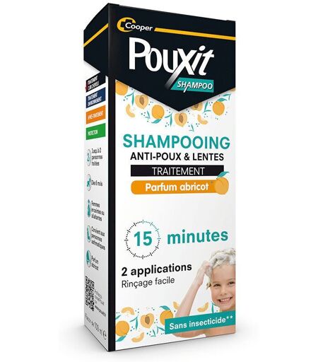 Traitement pour adulte et enfant de plus 6 mois Pouxit Shampoo parfum abricot est indiqué dans le traitement poux du cuir chevelu et des lentes chez l’adulte et l’enfant de plus de 6 mois. Il peut être utilisé pendant la grossesse et l’allaitement. Veillez toutefois à demander l’avis de votre médecin ou de votre pharmacien avant utilisation.1. Bien agiter le flacon avant utilisation. 2. Appliquer le shampooing traitant uniformément et en quantité suffisante sur le cuir chevelu et les cheveux secs de façon à les recouvrir entièrement. 3. Masser les cheveux afin d’obtenir une imprégnation complète de la chevelure. 4. Laisser le produit agir 15 minutes. 5. Rincer soigneusement les cheveux. Répéter impérativement le traitement après 7 jours. ...