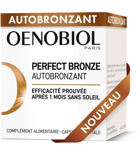 Complément alimentaire à utiliser dans le cadre d'une alimentation variée, équilibrée et d'un mode de vie sain.PERFECT BRONZE Autobronzant offre une peau et un teint dorés toute l’année, grâce à sa formule exclusive OENOBIOL à l’efficacité prouvée dès le 1er mois*. Une seule capsule concentre 5 pigments, 100% d’origine végétale, au dosage parfait et unique entre les couleurs rouge-orangé, jaune et rose. Elle contient également du Cuivre qui favorise la pigmentation normale de la peau. * Test clinique sur la précédente formule.RESULTATS : Dès 28 jours, la peau est visiblement dorée, le hâle naturel, uniforme et durable, le teint lumineux et éclatant*. *Etude de satisfaction sur la précédente formule.NOUVELLE FORMULE : Perfect Bronze Autobronzant, une formule concentrée en plantes et en micro-nutriments essentiels. Lycopène : pigment naturel de couleur vive rouge orangé ; Lutéine et Zéaxanthine : pigments naturels de couleur jaune orangé issus des pétales de Rose d’Inde ; Asthaxanthine : pigment de couleur rose-rouge issu des microalgues unicellulaires (Haematoccus pluvialis) ; Curcuma : extrait de la plante riche en curcumine, pigment de couleur jaune ; Cuivre : oligo élément essentiel, contribue à une pigmentation normale de la peau. 100% des pigments sont d’origine végétale. Convient aux végétariens.OENOBIOL, Marque française, pionnière dans la science de la nutrition cellulaire depuis plus de 35 ans, dévouée à la beauté de chaque femme afin qu'elle se sente sublime. Les compléments nutritionnels OENOBIOL s'appuient sur la recherche pour agir sur les éléments les plus essentiels du corps : les cellules en leur apportant des nutriments adaptés pour activer la beauté.Un produit doublement primé en 2023 / 2024✨Récompensé aux Victoires de la beauté🥇Elu Produit de l’année 2024IngrédientsÉmulsifiant : huile de tournesol raffinée; extrait de tomate (Solanum Lycopersicum); capsule végétale (Amidon hydroxypropylé, carraghénanes); humectant : glycérol; émulsifiant : monostéarate de glycérol; extrait de microalgue (Haemaococcus pluvialis); extrait de racine de curcuma (Curcuma longa); lutéine; zéaxanthine; riboflavine; biglycinate de cuivre.Données nutritionnellesPour 1 capsule : Extrait de tomate : 114 mg (dont lycopène) : 11,4 mg Extrait de microalgue : 26 mg (dont astaxanthine) : 1,3mg Extrait de racine de Curcuma : 20 mg (dont curcumine) : 1 mg Lutéine : 2,1 mg Zéaxanthine : 0,9 mg Cuivre : 0,15 mg (15% des AQR*) *AQR = Apports Quotidien de RéférenceConseils d'utilisations1 capsule par jour. Durée conseillée : 2 à 3 mois, selon les résultats souhaités. Recommandation : en complément d'une protection solaire adaptée, ne protège pas des coups de soleil. Réservé à l'adulte.Précautions d'emploiLes compléments alimentaires doivent être utilisés dans le cadre d’une alimentation variée, équilibrée et d’un mode de vie sain. Réservé à l’adulte, tenir hors de la portée des jeunes enfants. Les personnes sous contrôle médical, les femmes enceintes ou allaitantes... ...