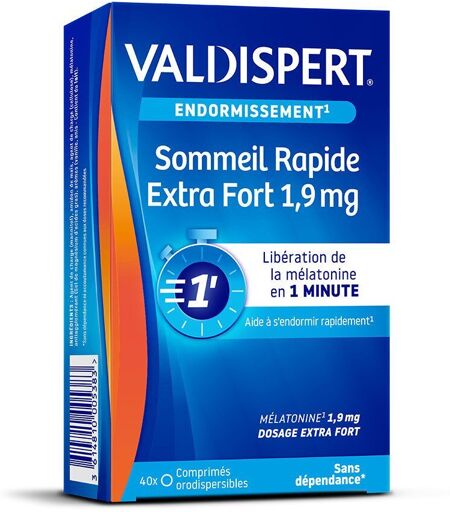 VALDISPERT - Endormissement Sommeil Rapide Extra Fort 1.9 mg Complément Alimentaire À La Mélatonine Diffusion en 1 minute Sans Dépendance 40 Comprimés Orodispersibles Comprimé(S) pc(s)