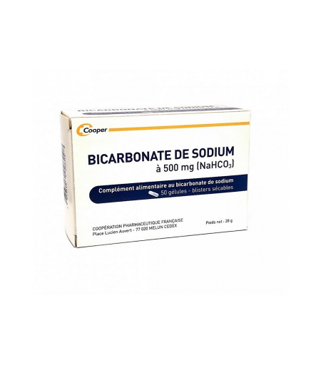 Bicarbonate de sodium à 500 mg (NaHCO3) de la marque Cooper est un complément alimentaire sous forme de gélules, conditionnées dans des blisters sécables. Conditionnement : 50 gélules. Poids net : 28 g. ...