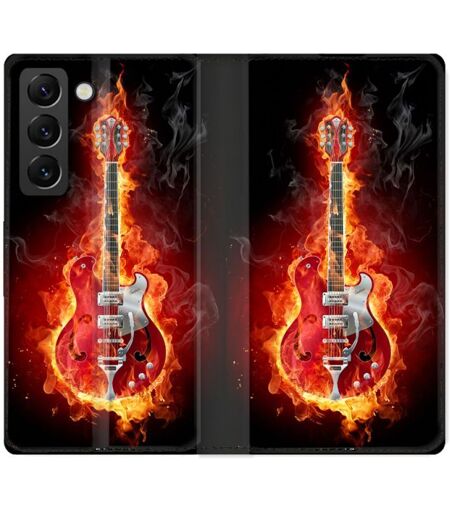 Housse Cuir Portefeuille Pour Samsung Galaxy S22 Plus Musique Guitare Electrique
