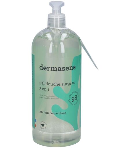 Un gel douche aux notes boisées et envoutantes !Le gel douche surgras 3 en 1 au parfum Cèdre blanc vous transportera vers des notes hivernales. Son agréable parfum combine des fragrances vertes, fumées et boisées.Il saura faire de vos douches quotidiennes de véritables moments de plaisir, qui n’appartiennent qu’à vous !Les gels douches surgras 3 en 1 DermAsens nouvelles formules !Dermasens a fait évoluer sa gamme de gels douche surgras 3 en 1 pour prendre soin des peaux et des cheveux de toute la famille.Les formulations de ses gels douche sont 0 % : sans savon et sans colorant. Les ingrédients sont rigoureusement sélectionnés selon un cahier des charges strict qui exclut les substances à risque.Enrichis en agents surgraissants d'origine végétale, les gels douche surgras nettoient et adoucissent votre peau à chaque utilisation tout en limitant le dessèchement cutané.Les gels douche surgras Dermasens redonnent ainsi douceur et souplesse à l'épiderme tout en laissant un film protecteur sur votre peau. Afin de vous offrir des expériences plaisantes et variées, l'efficacité et la protection du gel douche surgras ont été associées à des parfums gourmands et fleuris !En plus d'être efficaces sur les peaux normales et mixtes comme sur les peaux sèches à très sèches, les gels douche surgras 3 en 1 Dermasens nouvelles formules nettoient également tout en douceur les cheveux.Bénéfices98 % d’ingrédients d'origine naturelle0 % : Sans savon et sans colorantParfum sélectionné pour limiter les allergènesTestée sous contrôle dermatologiquePour peaux sensibles et délicatesEnrichis en agents surgraissants pour éviter le dessèchement cutanépH neutre pour la peauIndicationCe gel douche surgras 3 en 1 nettoie tout en douceur le corps, le visage et les cheveux en les laissant délicatement parfumé. A partir de 3 ans.ApplicationFaire mousser une noisette de gel douche dans le creux de la main, puis laver le corps, le visage et les cheveux, préalablement mouillés. Rincer soigneusement.Usage quotidien. Convient à toute la famille (dès 3 ans). Eviter le contact avec les yeux. En cas de contact avec les yeux, rincer soigneusement à l'eau.IngrédientsAQUA, COCO-GLUCOSIDE, GLYCERIN, SODIUM COCO-SULFATE, COCAMIDOPROPYL BETAINE, GLYCERYL OLEATE, SODIUM CHLORIDE, PARFUM, CITRIC ACID, SODIUM BENZOATE, POTASSIUM SORBATE, GUAR HYDROXYPROPYLTRIMONIUM CHLORIDE, SODIUM HYDROXIDE, TOCOPHEROL, HYDROGENATED VEGETABLE GLYCERIDES CITRATE. ...
