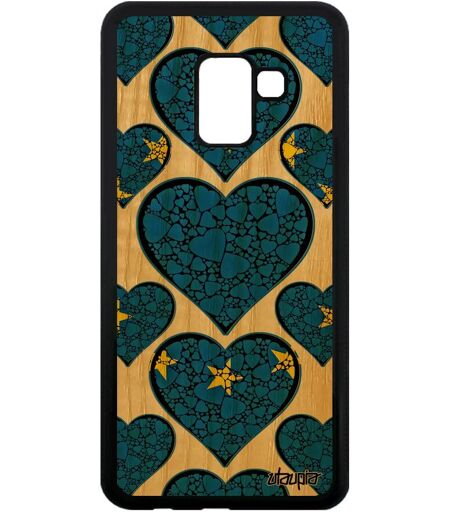 Coque Samsung Galaxy A8 2018 En Bois Silicone Drapeau Europeen Europe Ue Housse Union Europeenne I Love Coeur Bumper Portable Mobile
